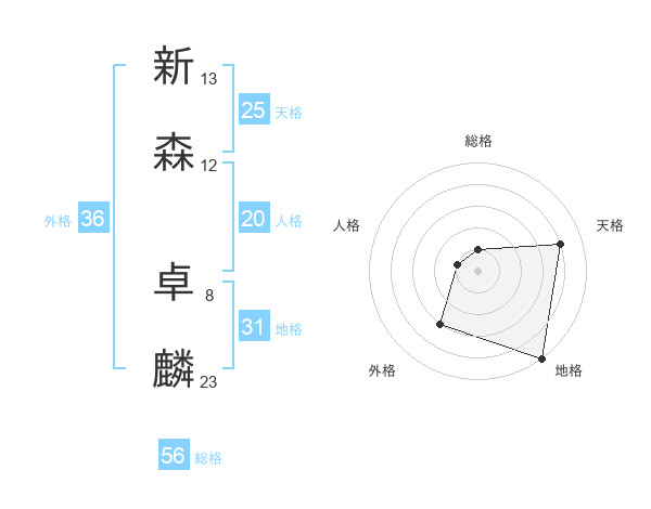 新森 卓麟さんを姓名の画数から五運を鑑定