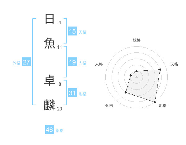 日魚 卓麟さんの天格は15画の4点!
