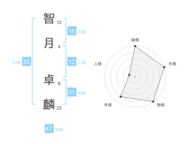 智月 卓麟さんの総格は47画の5点!