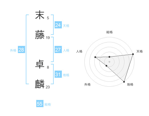 末藤 卓麟さんを姓名の画数から五運を鑑定