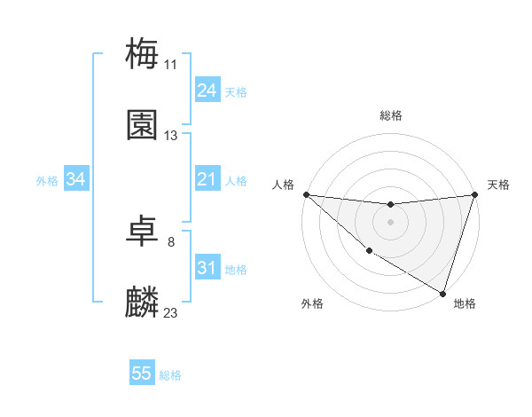 梅園 卓麟さんを姓名の画数から五運を鑑定