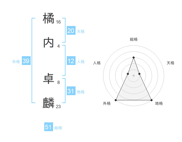 橘内 卓麟さんを姓名の画数から五運を鑑定