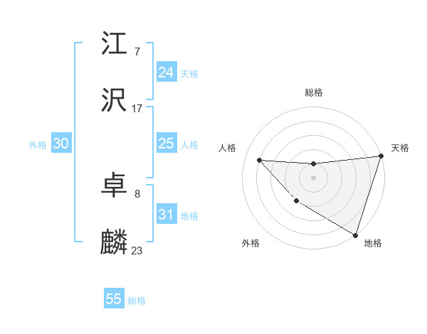 江沢 卓麟さんを姓名の画数から五運を鑑定