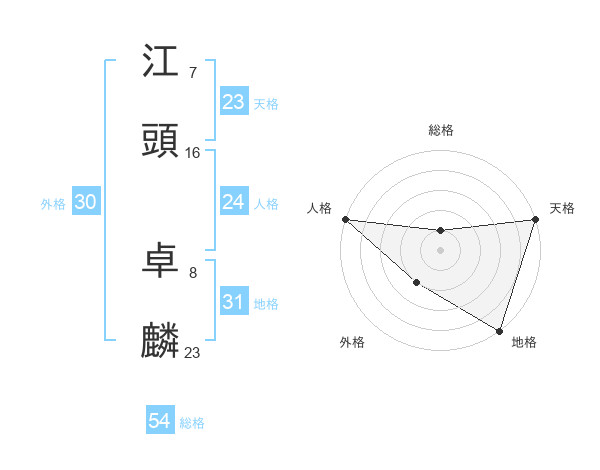 江頭 卓麟さんの総格は54画の1点!
