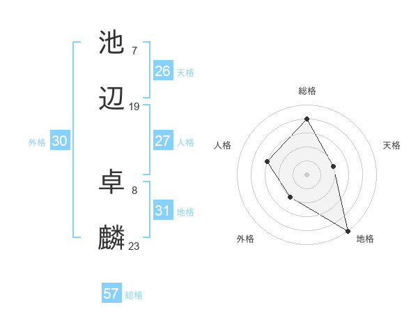 池辺 卓麟さんを姓名の画数から五運を鑑定