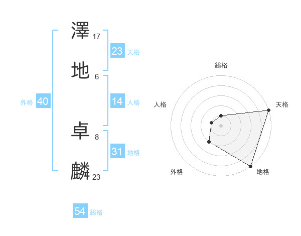 澤地 卓麟さんの天格は23画の5点!