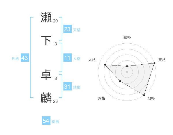 瀬下 卓麟さんの天格は23画の5点!