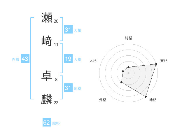 瀬﨑 卓麟さんの地格は31画の5点