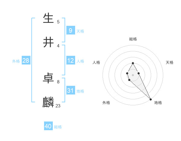生井 卓麟さんを姓名の画数から五運を鑑定