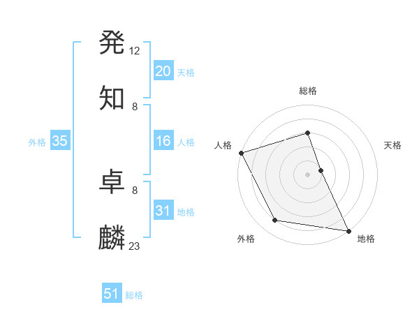 発知 卓麟さんの総格は51画の3点!