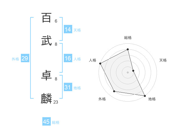 百武 卓麟さんの総格は45画の4点!