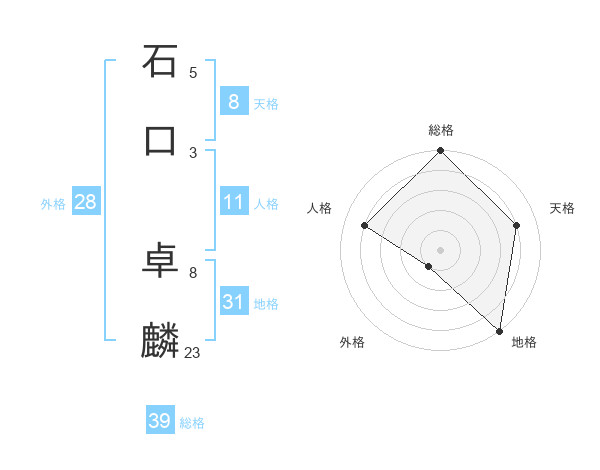 石口 卓麟さんを姓名の画数から五運を鑑定