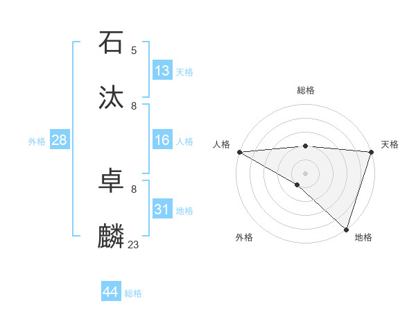 石汰 卓麟さんを姓名の画数から五運を鑑定