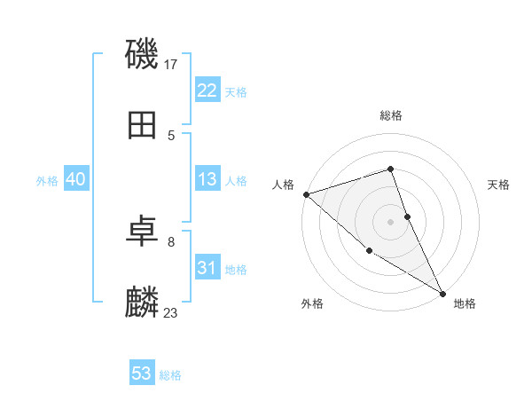 磯田 卓麟さんの総格は53画の3点!