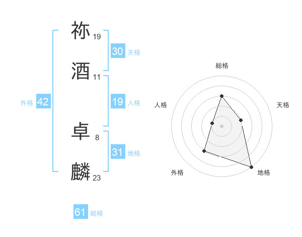 祢酒 卓麟さんの地格は31画の5点!