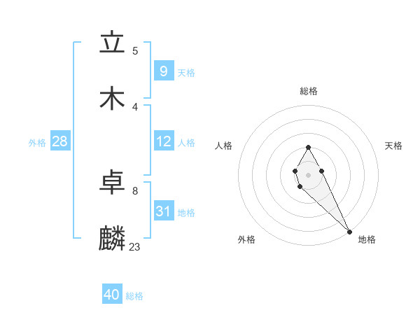 立木 卓麟さんの総格は40画の2点!