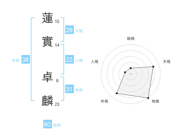 蓮實 卓麟さんを姓名の画数から五運を鑑定