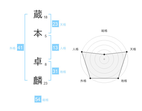 蔵本 卓麟さんの天格は23画の5点!