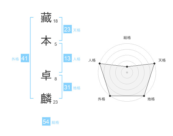 藏本 卓麟さんを姓名の画数から五運を鑑定