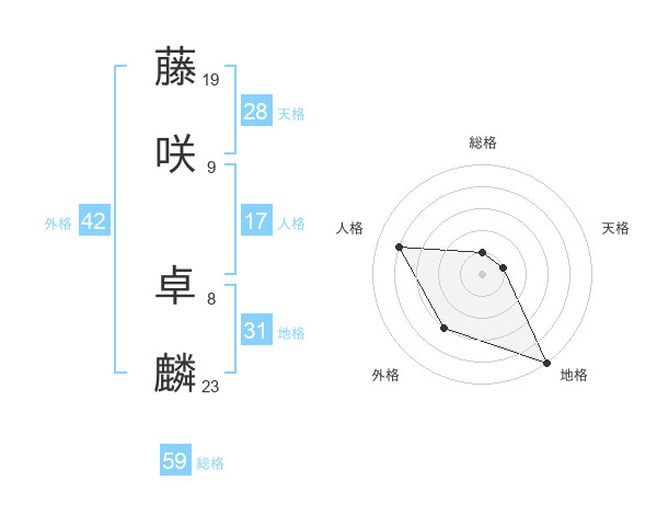 藤咲 卓麟さんの総格は59画の1点!