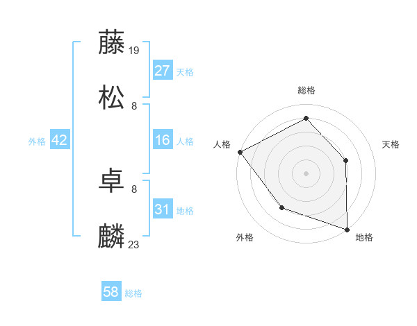 藤松 卓麟さんの総格は58画の4点!