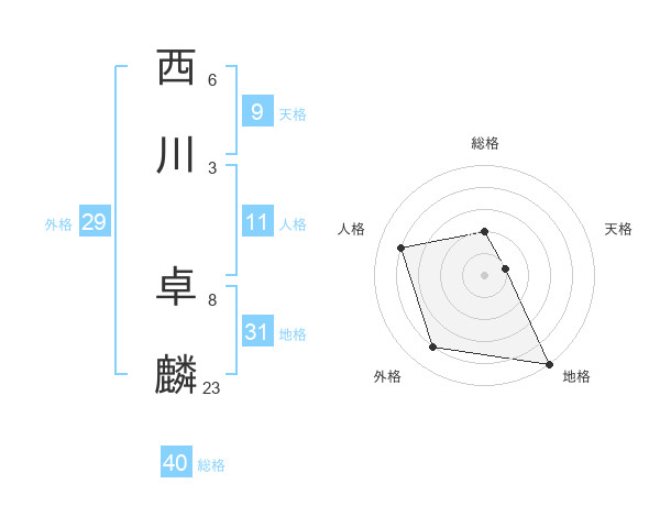 西川 卓麟さんを姓名の画数から五運を鑑定