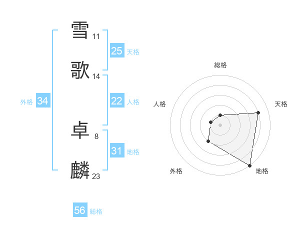 雪歌 卓麟さんを姓名の画数から五運を鑑定
