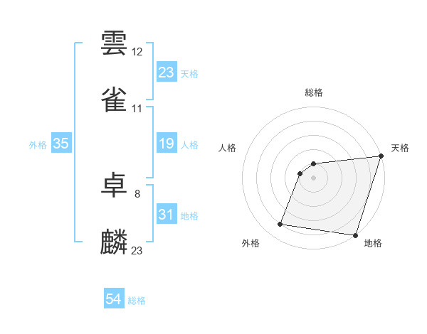 雲雀 卓麟さんを姓名の画数から五運を鑑定