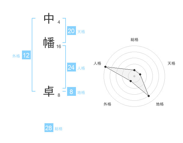 中幡 卓さんの総格は28画の1点!