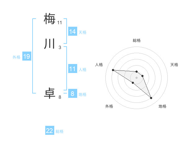 梅川 卓さんの総格は22画の1点!