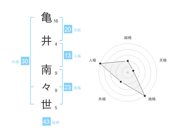 亀井 南々世さんを姓名の画数から五運を鑑定