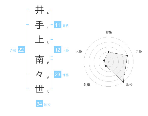 井手上 南々世さんを姓名の画数から五運を鑑定