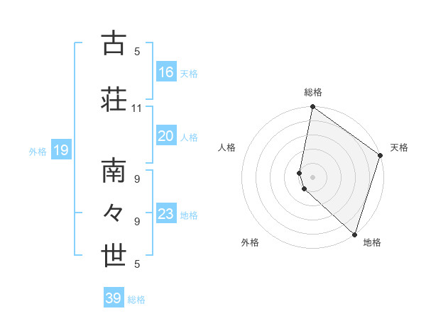 古荘 南々世さんを姓名の画数から五運を鑑定