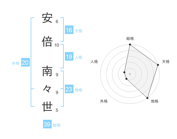 安倍 南々世さんを姓名の画数から五運を鑑定