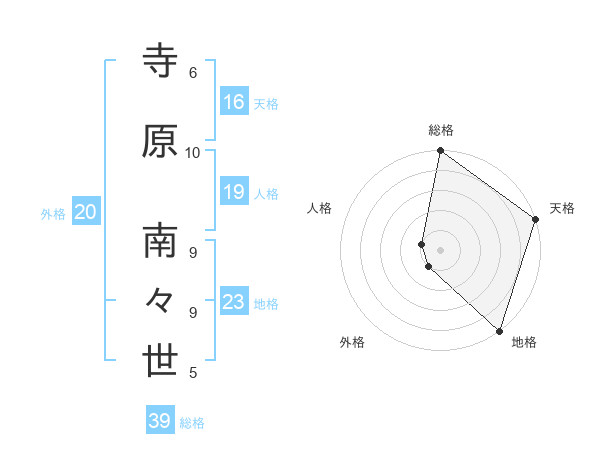 寺原 南々世さんの地格は23画の5点!