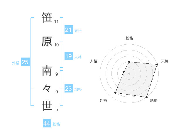 笹原 南々世さんを姓名の画数から五運を鑑定
