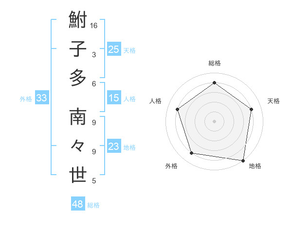 鮒子多 南々世さんを姓名の画数から五運を鑑定