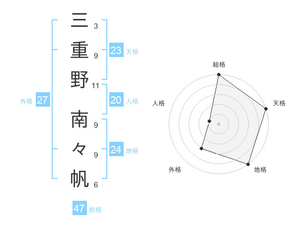 三重野 南々帆さんの総格は47画の5点!
