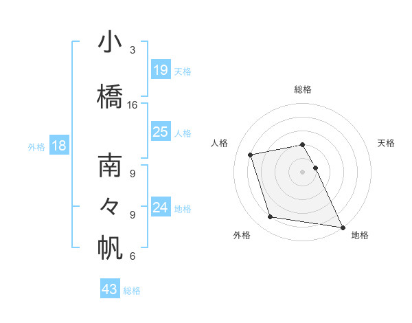 小橋 南々帆さんを姓名の画数から五運を鑑定