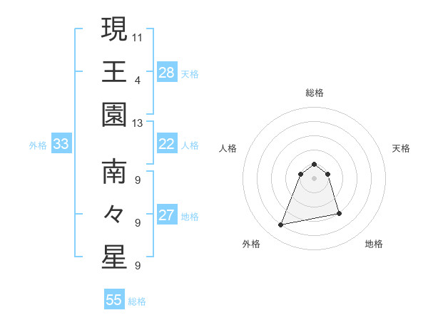 現王園 南々星さんを姓名の画数から五運を鑑定