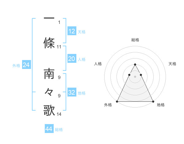 一條 南々歌さんを姓名の画数から五運を鑑定