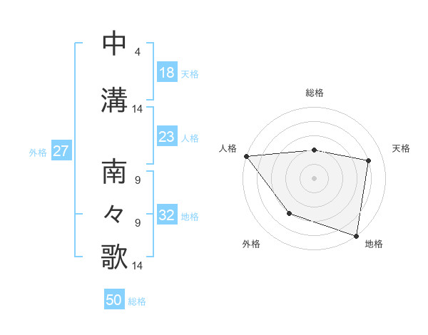 中溝 南々歌さんの総格は50画の2点!