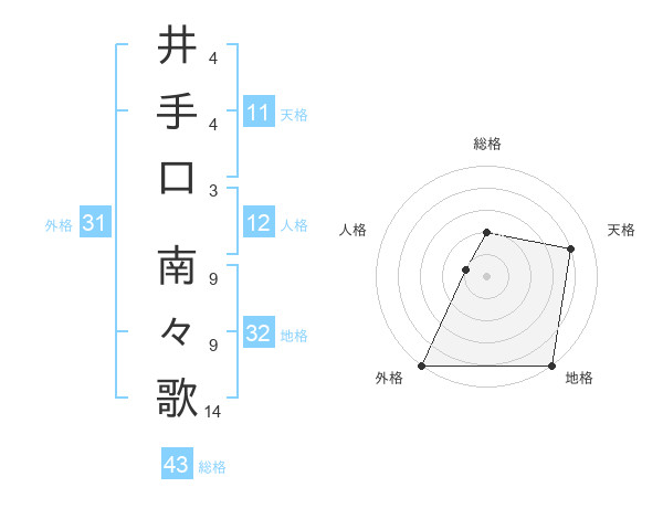 井手口 南々歌さんを姓名の画数から五運を鑑定
