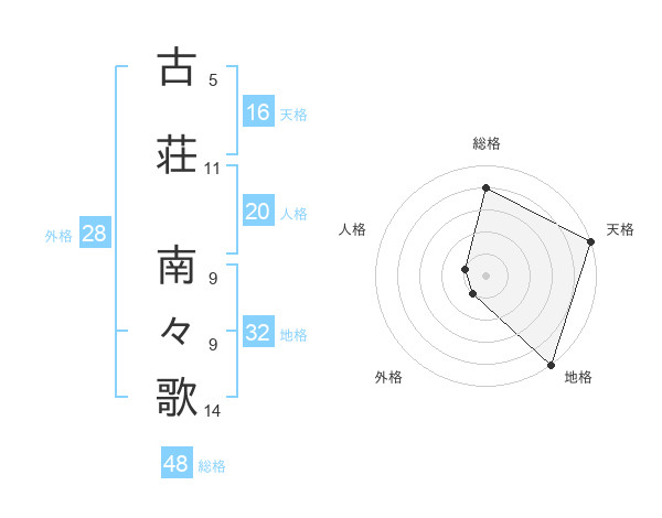 古荘 南々歌さんを姓名の画数から五運を鑑定