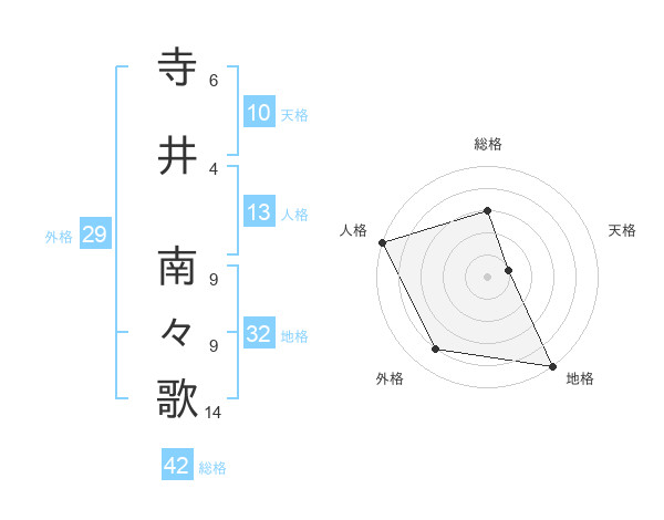 寺井 南々歌さんの総格は42画の3点!