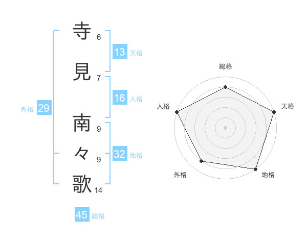 寺見 南々歌さんの天格は13画の5点!