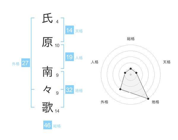氏原 南々歌さんの地格は32画の5点!