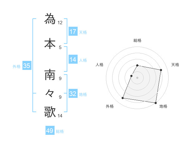 為本 南々歌さんを姓名の画数から五運を鑑定