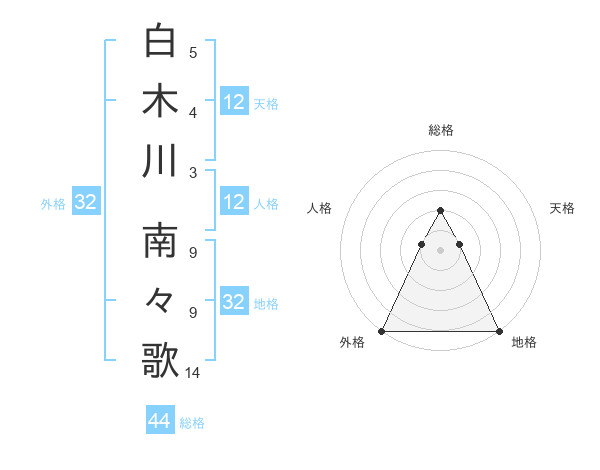 白木川 南々歌さんを姓名の画数から五運を鑑定