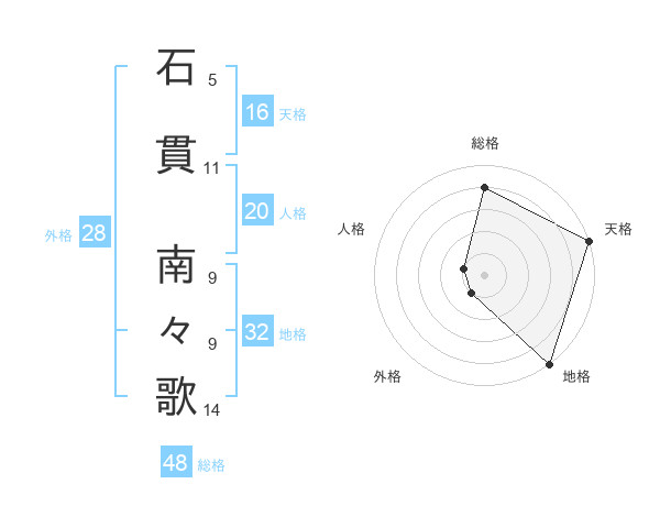 石貫 南々歌さんを姓名の画数から五運を鑑定